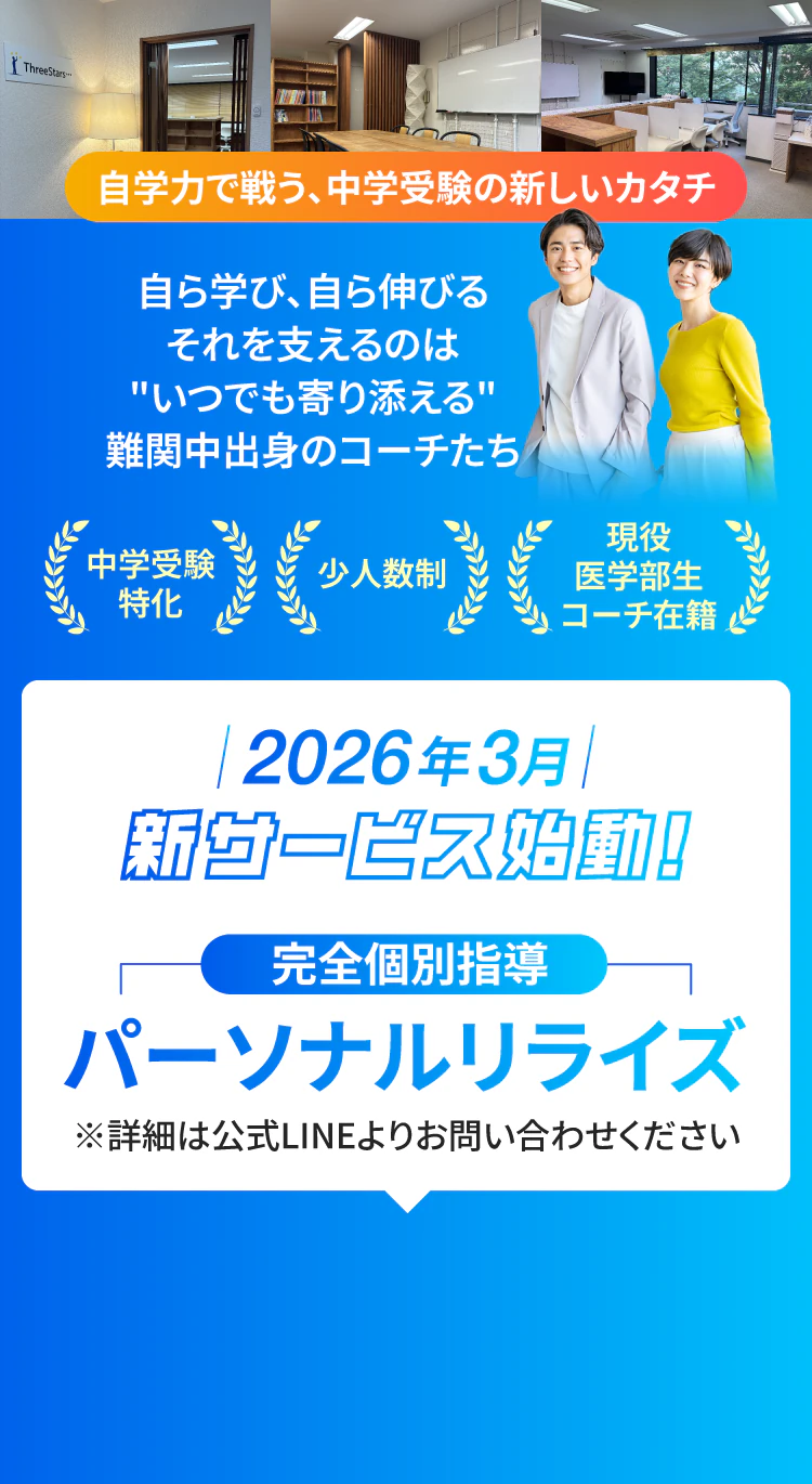 ついに誕生!ThreeStarsのリアル校舎。難関中学出身コーチによる伴走型自習室「リライズ」